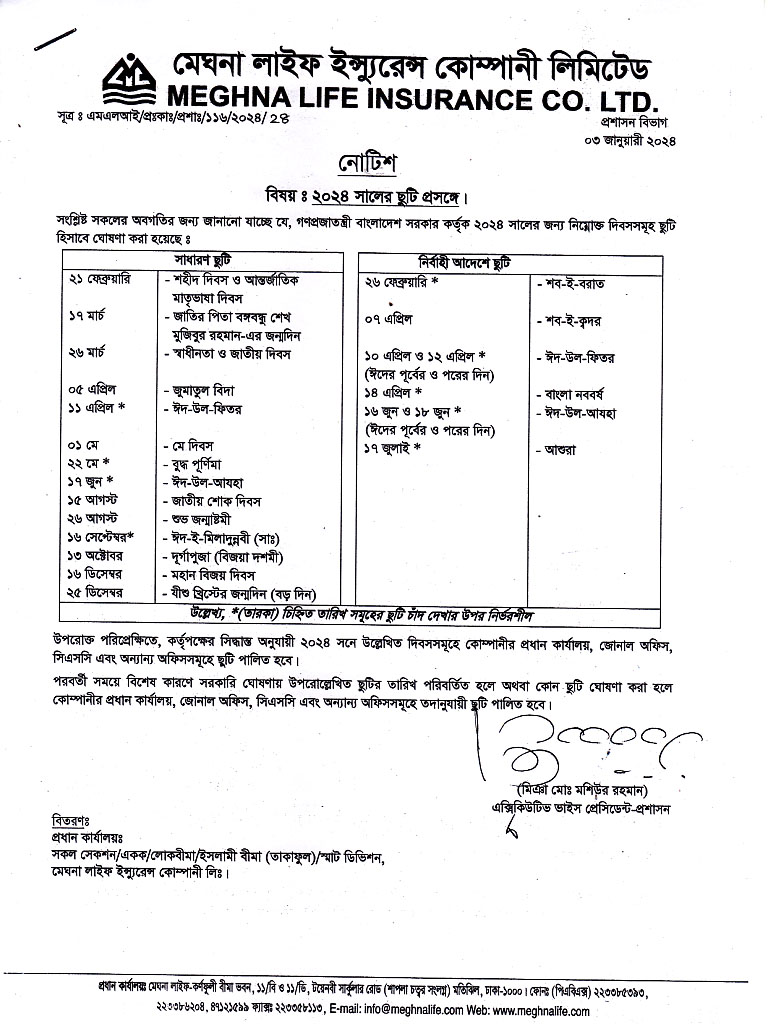 ছুটির তালিকা - ২০২৪